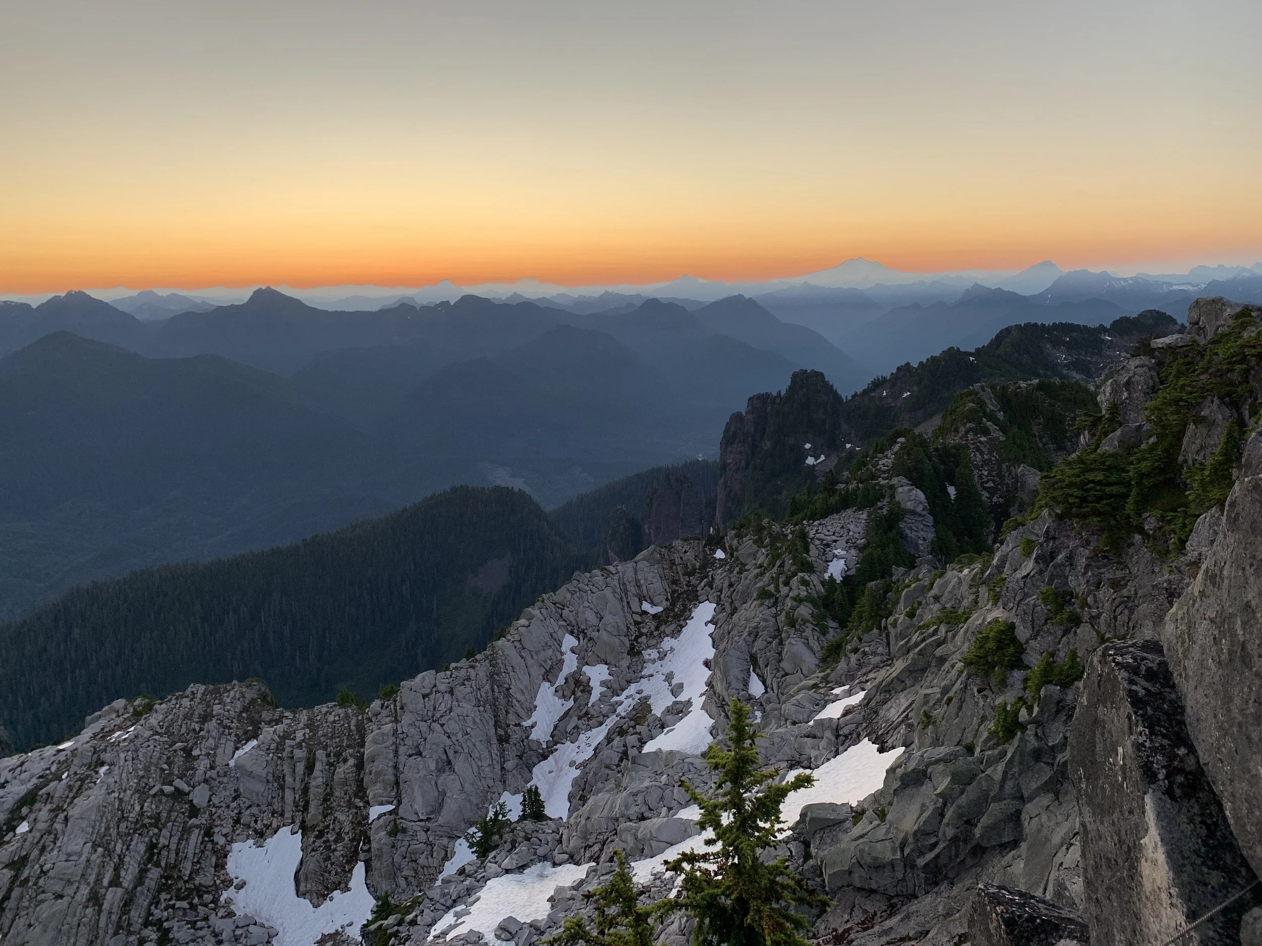 I vividly remember going up some of the switchbacks and looking behind us. In the middle of the forest there was a little break in the trees and I could see the city lights miles and miles away in the distance. I paused for a moment and looked around and remember feeling such a sense of tranquility. I could've been sleeping in my bed like everyone way out there. But instead I was breathing in the freshest air Washington State had to offer.